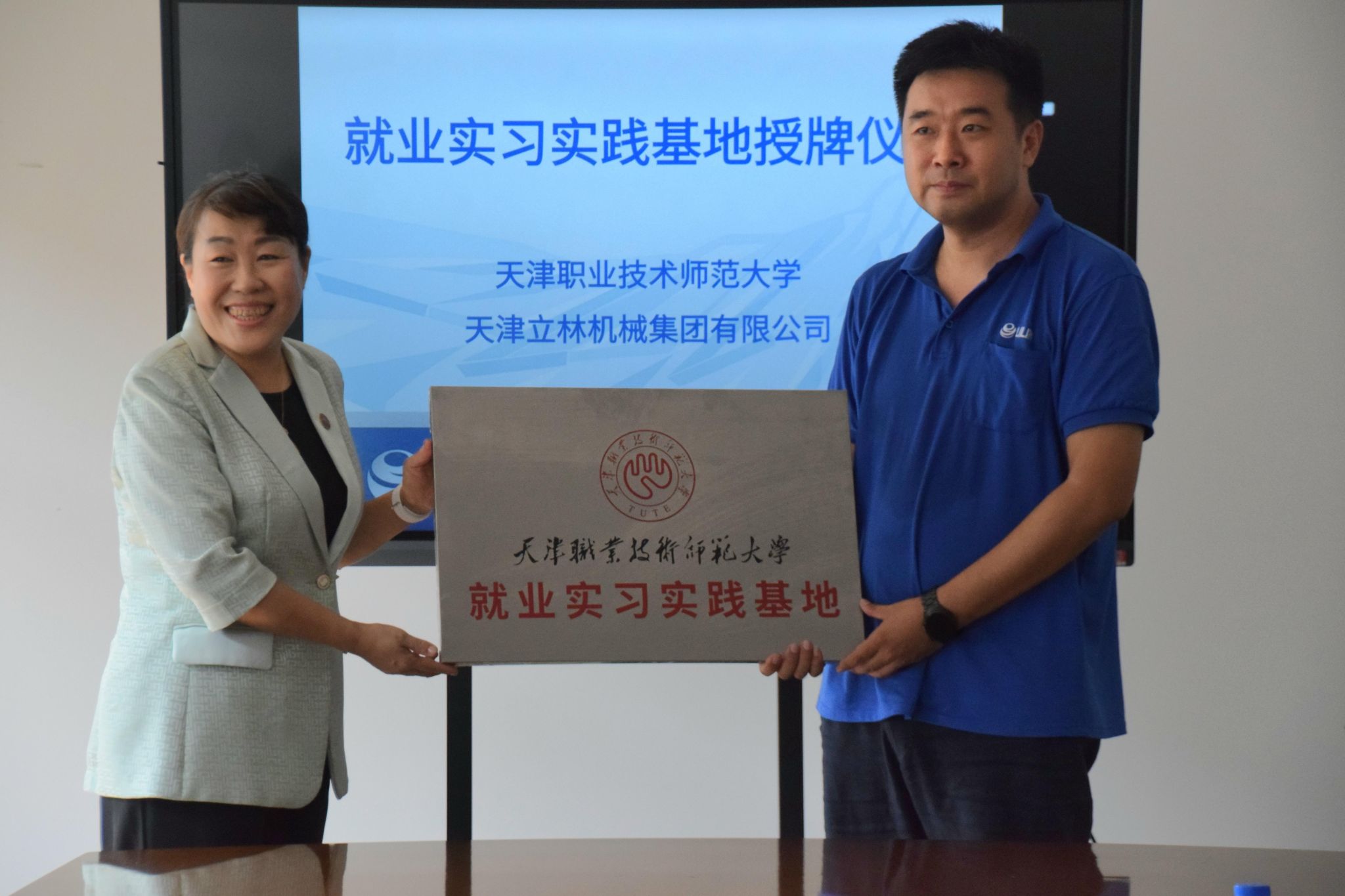 正在预会职员睹证停,两边举办签约受牌典礼。王冬霞取弛伯弢代替两边配合签订校企互助订定,李靖代替黉舍背企业赋予“天津工作技能师范年夜教便业试验理论基天”牌匾。