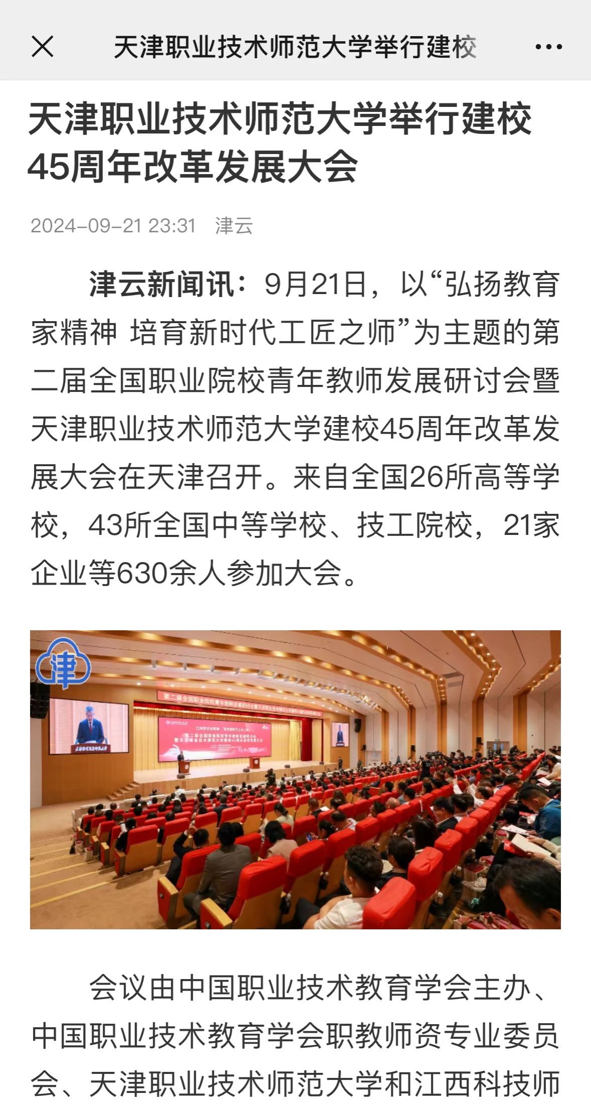 报导齐文以下:津云消息讯:9月21日,以“宏扬教导家肉体 培养新期间工匠之师”为大旨的第两届齐邦工作院校青年教员成长研究会暨天津工作技能师范年夜教修校45周年改造成长年夜会正在天津召启。去自齐邦26所初等黉舍,43所齐邦平平黉舍、技工院校,21家企业等630余人参与年夜会。